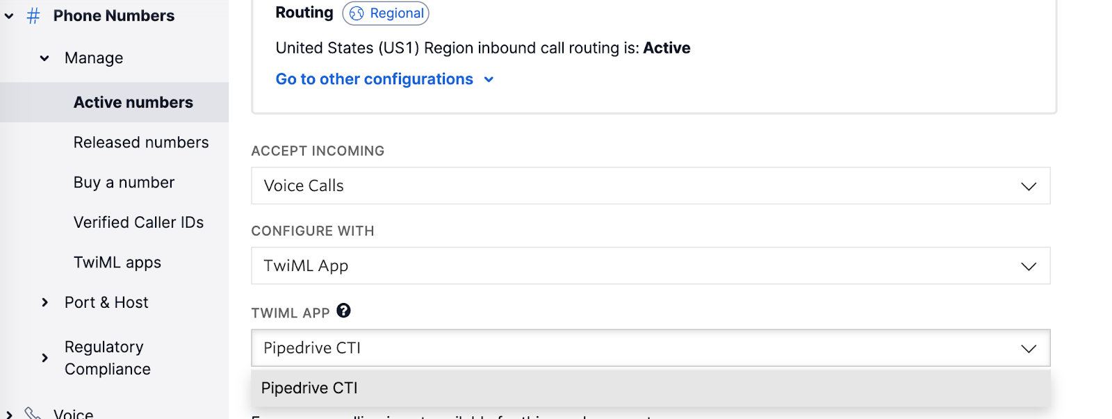 But what's that βTwiML App: Pipedrive CTI' thing at the end of the row?